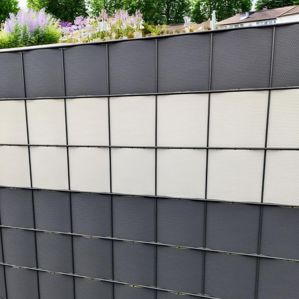 The zaun|zu® brand stands for the highest quality with the PREMIUM privacy strips for the double wire mesh fence, naturally Made in Germany. With the environmentally friendly product made of polypropylene (PP) without toxic plasticizers, your fence will not only be a visual highlight, but also a reliable protection from prying eyes. Thanks to the 5-year guarantee for UV stability, you can be sure that the privacy strip will retain its color and shape in the long term. Trust in the laboratory-tested quality of the fence|zu PREMIUM privacy strips and enjoy the advantages of an enchantingly beautiful fence!