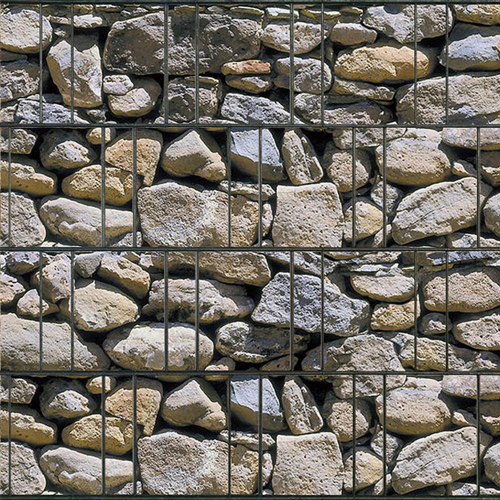 Die Sichtschutzstreifen mit Stein-Motiv werden als praktische 26m Rolle geliefert. Die Streifenbreite der Zaunblende ist ca. 19cm und passt somit in alle gängigen Doppelstabgitter. Eine Rolle entspricht ca. 5qm und reicht für beispielsweise 10 Reihen (z. B. Höhe 2m) einer Doppelstabmatte mit 2,5m Breite. Die Streifen sind beidseitig bedruckt und sind somit von inner- und außerhalb Ihres Grundstücks ein echter Hingucker.