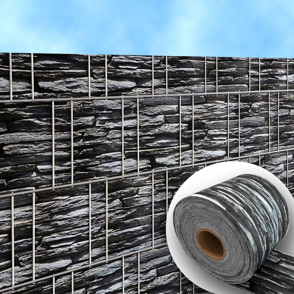 Die Sichtschutzstreifen mit Stein-Motiv werden als praktische 26m Rolle geliefert. Die Streifenbreite der Zaunblende ist ca. 19cm und passt somit in alle gängigen Doppelstabgitter. Eine Rolle entspricht ca. 5qm und reicht für beispielsweise für 10 Reihen (z. B. Höhe 2m) einer Doppelstabmatte mit 2,5m Breite. Die Streifen sind beidseitig bedruckt und sind somit von inner- und außerhalb Ihres Grundstücks ein echter Hingucker.