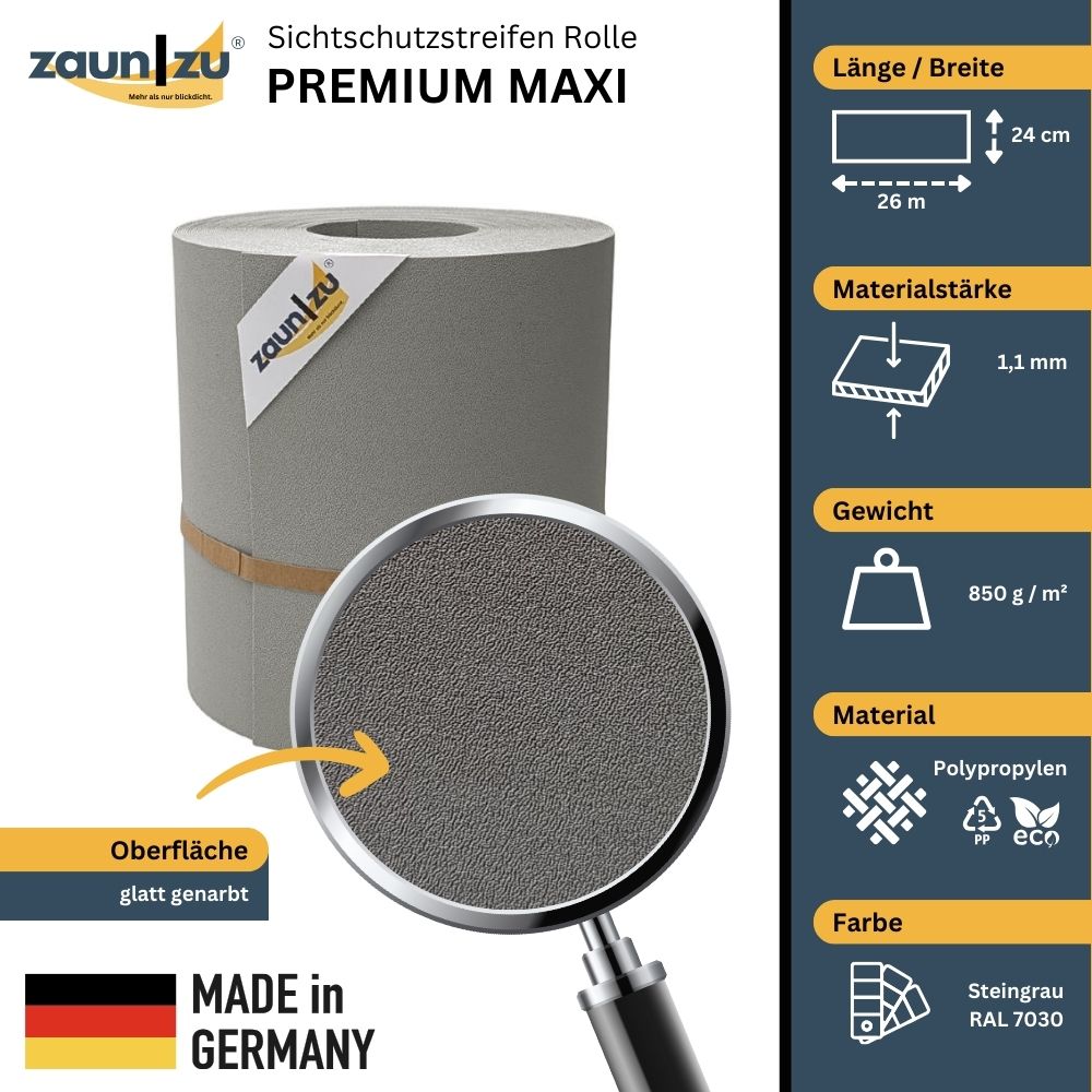 • zaun|zu PREMIUM MAXI: Sichtschutzstreifen Made in Germany - Qualität, auf die du dich verlassen kannst.