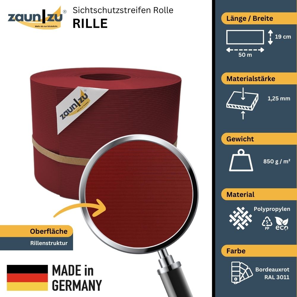 Die zaun|zu RILLE 50m Sichtschutzstreifen-Rolle: Viele Farben standardmäßig verfügbar