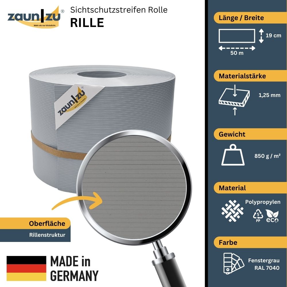Die zaun|zu RILLE 50m Sichtschutzstreifen-Rolle: Viele Farben standardmäßig verfügbar